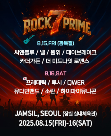 매년 여름을 뜨겁게 달구는 대표적인 실내 록 페스티벌, 7 ROCK PRIME 2025가 드디어 8월 15일과 16일 양일간 서울 잠실실내체육관에서 개최됩니다. 국내외 최정상급 록 밴드들이 한 자리에 모여 단 이틀간, 오직 록음악에만 집중하는 폭발적인 무대를 선사합니다. 특히 올해는 더욱 화려해진 라인업과 실내 공연 특유의 쾌적한 환경, 관객 중심의 운영 시스템이 만나 최고의 락페를 예고하고 있습니다.
