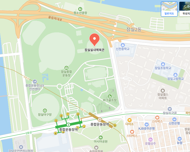 - 주소: 서울특별시 송파구 올림픽로 25, 잠실실내체육관