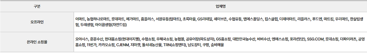 - 이마트, 롯데마트, 홈플러스 등 오프라인 매장